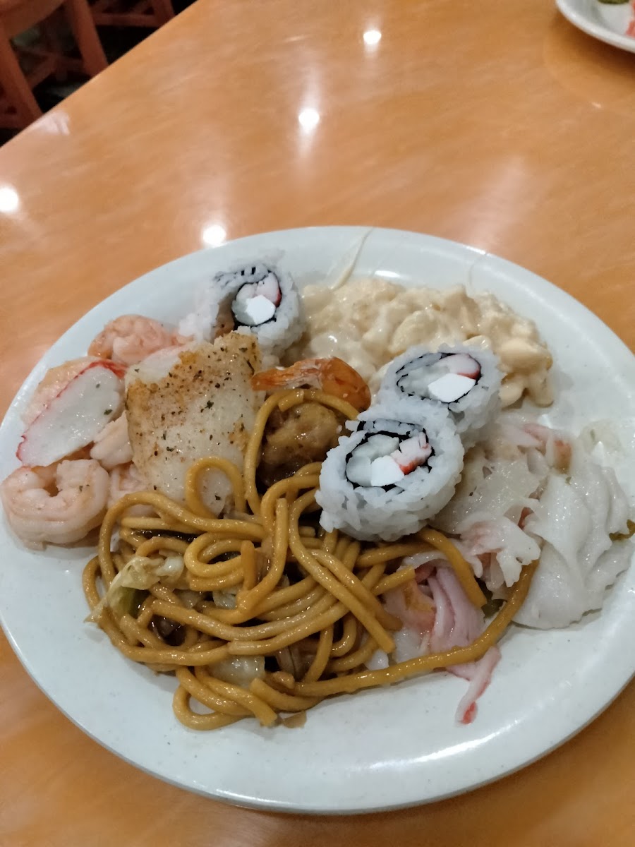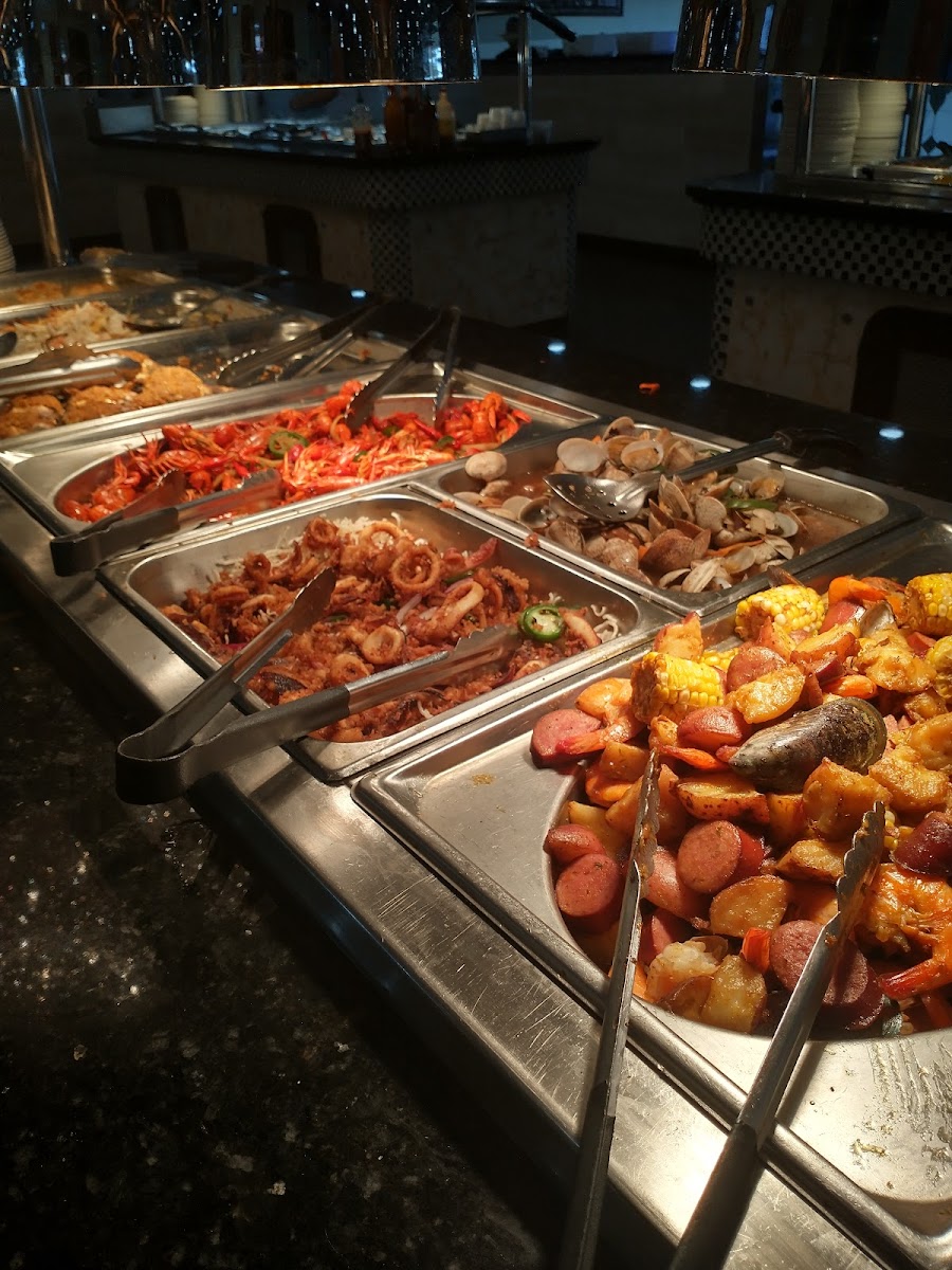 Buffet was clean and stocked. They made their homemade version of crab rangoon and it was very good. The seafood and baked fish was moist and had a good taste. The service is excellent; drinks refilled and plates picked up throughout our stay. We required quick service for a medical urgency and the servers worked quickly to provide the required drink. The representative came back to make sure all was well. The concern and thoughtfulness was appreciated.