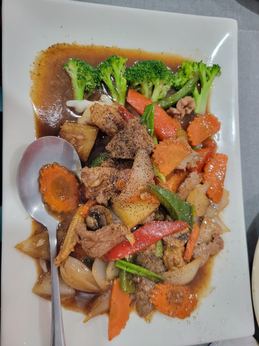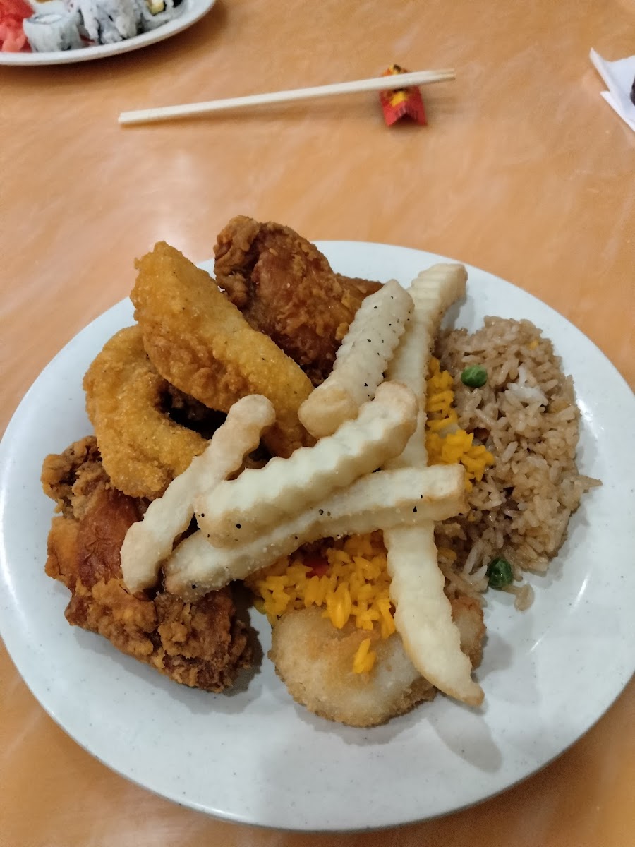 Very clean, and the food was very fresh! A lot of variety of food, including non-Chinese, like Sushi, American Pizza, Fried chicken, French fries, and Hibachi. The dessert selection was vast: cakes, fruits, and cookies; some were not very tasty but better than nothing. We tried this place for lunch at 1 p.m. on a weekday. The food was very fresh and well prepared without getting old. The Asian lady and other reception staff were very kind and helpful. I was worried about seeing all the negative comments on the review on Google Maps before trying this place, but I ended up having nothing to complain about. The price was very fair, and no tips were requested, as many people mentioned over a year ago. Maybe they changed the policy, or that was a specific service person asked to do.